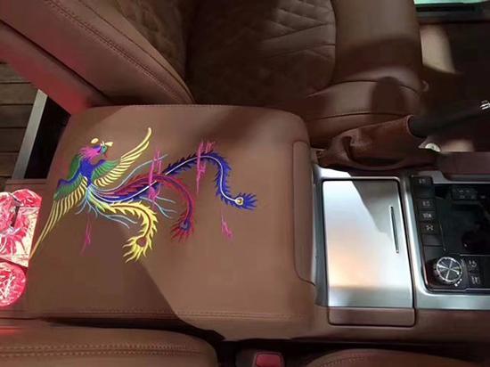 扶手箱彩凤配副驾驶金龙,真是龙凤呈祥,在古代那就是皇家国戚。