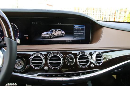 全新18款奔驰S560依旧是熟悉的造型,要说找出更大的不同,那就是全新造型的方向盘,由原来的两辐造型变为了三辐式,仪表盘和中控的屏幕变为一整块,18款的奔驰S560增加了畅心醒神功能,预设了活力、愉悦等6个情景,选择不同情景时车内的氛围灯、音乐音效、座椅按摩等都会根据所设情景改变,内部装饰延续了之前迈巴赫62的设计风格。