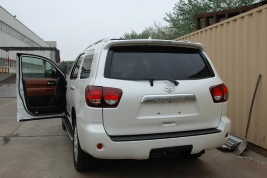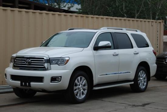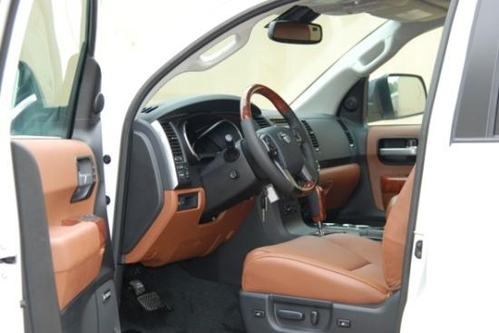 2018款加版丰田红杉5700 白棕 配置:新款镀铬中网,LED日间行车灯,雷达测速,20轮,巡航定速,并道辅助,底盘升降,2/4驱切换,吸顶DVD,前座椅通风加热,二排座椅加热,第三排电动座椅,三区空调及自动恒温空调,桃木方向盘,导航屏,倒车影像,前后电眼,4CD,JBL高保真音响,行政7座,脚踏板,行李架,国五环保