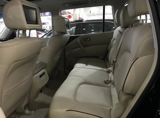 内饰方面:途乐为三排座车型,内饰整体风格豪华,真皮座椅、DVD娱乐、上下坡以及胎压监测等装备也都悉数出现。日产尼桑途乐内饰材质也更加的考究,使用了皮革,铝以及木纹样条作为点缀。中控部分的设计比较具有豪华感,标准日系豪华车的风格,BOSE音响是很多中高端车所选用的,音响效果不会让你失望。车内后视镜就是2018款另外一个有意思的升级,这块后视镜带有液晶屏幕,可以播放尾门上方新增那只后视摄像头的图像。这为倒车提供了更好的视野。仔细看拍摄的图像,图像是跟手机自拍一样的处理方式,视频中的文字是反向的,模拟了镜子成像的效果。另外,这个功能可以随时扳动后视镜后的塑料扳手(像一般车型的手动后视镜防炫目扳手)来激活,不在倒车状态也可以查看向后拍摄的视频。2018款SE的另外一个小升级是在中控台空调调节区下方和中央扶手箱的后部(面向第二排座椅)分别新增了2个USB接口。为接驳更多的电子设备以及手机充电提供了方便。最后教大家一个识别年份的小窍门,车辆前挡风玻璃左前方下部向中控台方面看,都有一个VIN序列号也就是车架号,从后往前数第十位是字母“J”的,就是2018款,如果是H则为2017款。