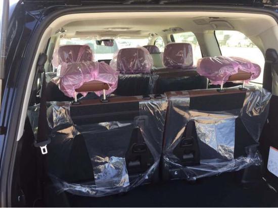 车内乘坐、载物空间均极为优良,新车型在屏幕颜色和界面 , 都向新的雷克萨斯LX (配置|询价)看齐。大量泛金属光泽饰条的采纳,大大加强了活动感和时尚感。车内7个座椅均为真皮打造,第一排座椅:电动、可调节;第二排座椅:带头枕、可折叠、中央扶手。