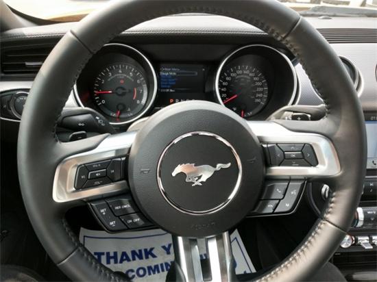 18款福特野马整体上看新款福特野马比旧款精致了,新款采用10速变速箱。外形依旧那么放荡不羁。宽大的上下前脸进气格栅,于发动机的有效散热。在一贯的肌肉车线条基础上,增加了许多弧型线条,使整车看上去更为刚毅、强壮,也更具视觉冲击力。前盖经过彻底重塑,中心部分高高隆起,暗示其拥有动力强劲的引擎。