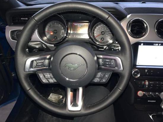 新款福特野马2.3T不再使用廉价质次的硬塑料,所有塑料件均有柔软的质感,仪表台上原先的金属喷涂塑料,这次全部改为真正的铝合金面板,甚至连方向盘上的银色部分也是金属材料,用强烈的金属感来衬托外形的肌肉感,同时能够满足现代时尚的审美观。
