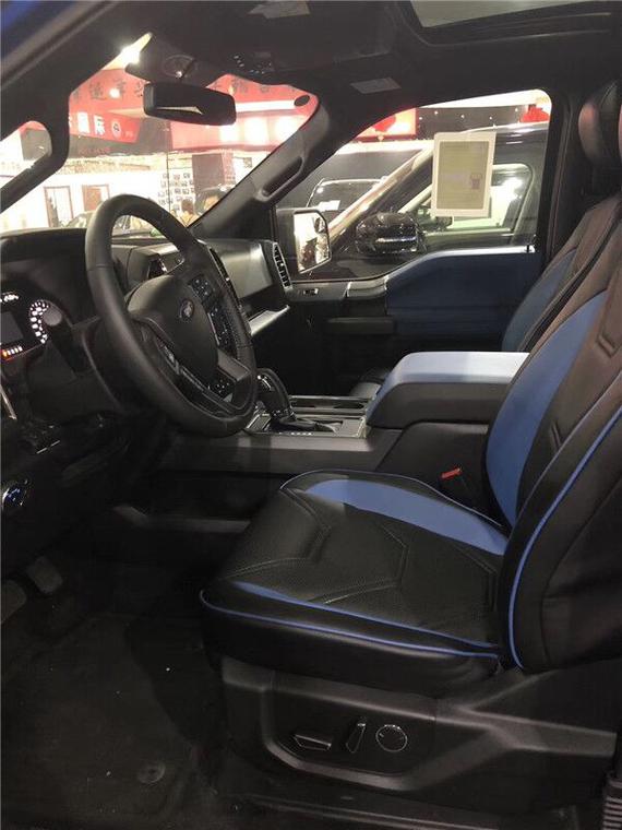 福特新款F-150内饰与现款车型相比并无明显变化,新增定制版Recaro座椅,并提供宝石蓝配色的Alcantara材质进行选择。