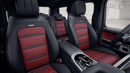 19款奔驰G63AMG中控台多处均采用碳纤维材料覆盖,精致的选材及精湛的内装令人拍案叫绝。宽敞充裕的车内空间和多种座椅布局方案,能够充分满足您对空间自由度的要求。全新进口奔驰G63AMG采用了红色的内饰搭配黑色显得相当高贵。