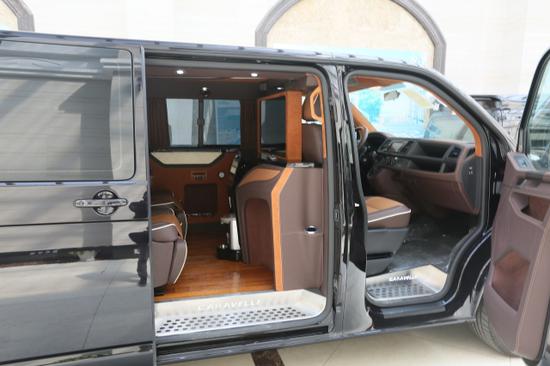 2018款大众T6凯路威四驱2.0T豪华商务车配置方面:大众凯路威打开电动滑动门,你就能发现此款改装车的秘密了。乘客舱内主要以两个独立的 座椅为主,豪华商务车上应有的配置一项都不少,俨然一副陆地头等舱的感觉。大众凯路威新车将增加3 区自动空调,而且前排乘客和后排乘客都可以控制,新车还使用了带自动电吸功能的右侧电动门,后尾 门也采用了自动电吸功能。