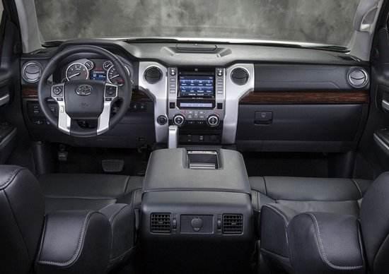 内部配置方面,SR5 TRD版本依旧配备织布座椅及灰黑色风格的内饰,而棕色真皮内饰加上部分桃木装饰依然是1794版本的标志性配备。安全性能配置同样做出了喜人的升级,加入了BSM并线盲区辅助、RCTA倒车辅助预警系统,PCS碰撞预警系统以及LDA车道偏离预警系统。不过BSM跟RCTA也只有在Platinum和1794版本上才能见到。仪表盘也同样做出了改动,更具科技感。