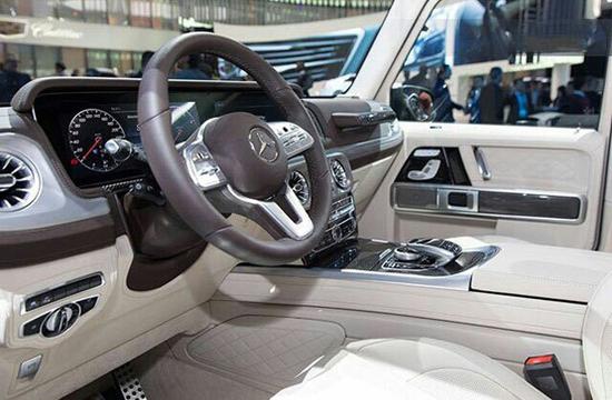 奔驰G级 (配置|询价)原先无论经历如何包装,选用各种高级材料重塑车厢,但从刻板的内饰面貌上只能传递出工具车的印记。如今进入全新奔驰G级的车厢后,能够看到最新奔驰家族化内饰设计,眼前的景象完全看齐自家SUV旗舰。车厢内除了经典的实木饰板外,还应用了金属、碳纤维和皮革等高级材质。最先引发惊叹的要数双12.3英寸高清屏,虚拟仪表盘与中控液晶屏融为一体,视觉上形成一个宽屏驾驶舱。显示界面提供有 “Classic经典,Sport运动,Progressive进阶” 三种显示模式切换,当然也支持用户个性化的自定义设定。