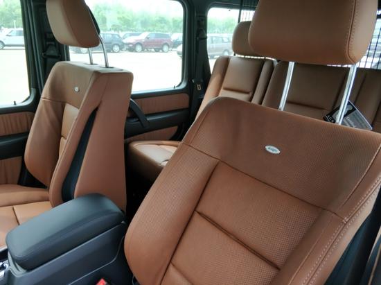 2018款奔驰G550加版车内采用深色调与桃木装饰,黑色真皮运动座椅非常舒适,方向盘以高档真皮包裹装饰,触感极其细腻。各别配有桃木装饰的操控台,稳重大气,同时提高了整体的质感,各种功能按钮应有尽有,丝毫不次于豪华轿车的功能;后排空间非常宽敞,且后排的座椅可以折叠,以得到更宽敞的储物空间。