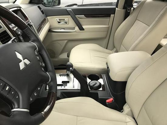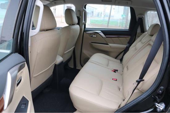 2018款三菱帕杰罗V97还新增了木纹装饰真皮包裹方向盘,集成定速巡航、音响等控制按键。2018款三菱帕杰罗V97并没有配备自动驻车和陡坡缓降等电子辅助系统,但这款车配备了海拔高度、温度、指南者、气压等专业越野数据显示功能。前排储物空间比较丰富,而最为实用的莫过于中央扶手箱了,它分为上下和冰箱,可以用来分类存放物品。但到了第二排,能称得上是储物空间的也就剩座椅中间扶手处的杯架了,但好在其配备了限位装置,能较好的固定水杯,实用性还不错。