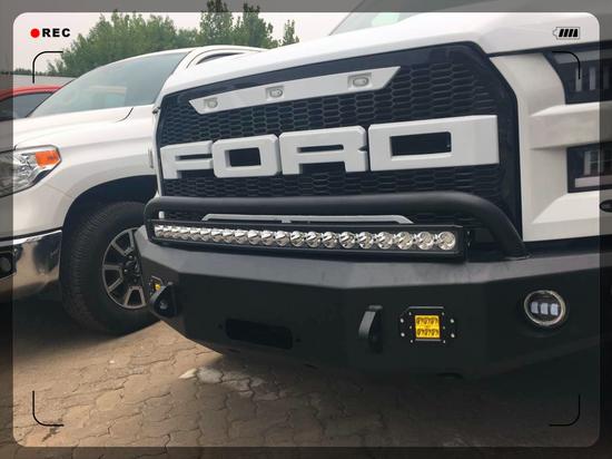 福特猛禽一款优越的越野皮卡,外观采用的是凹凸优美轮廓,加深了此车的优美和霸气外表,前杠是最新款的三度纯钢打造,四个优美外观灯,让此车更胜一筹,中网采用最新款猛禽字母网,外加一排500米元素射光灯。