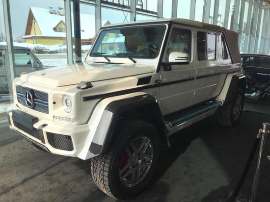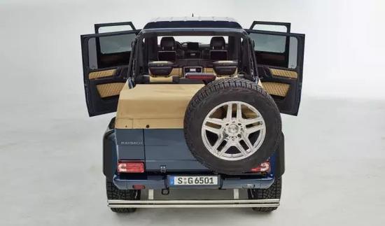 梅赛德斯-迈巴赫G650 Landaulet发布,V12双涡轮,630匹,1000牛米,5.345米,轴距较普通G级加长578毫米,4坐布局,车内有电动升降隐私玻璃,后排独立迈巴赫按摩座椅,10寸娱乐系统,电动折叠软顶,该车限量99台,起售价63万欧。