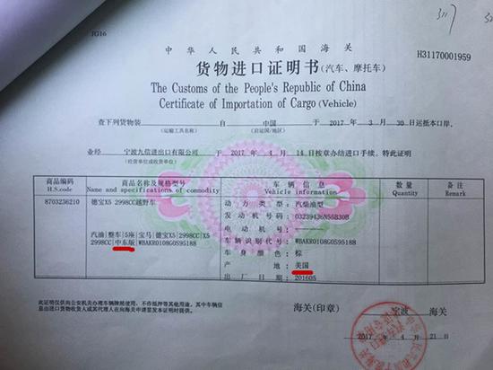 所以,要不要加税,不能看车身铭牌,只能看货物进口证明书,也就是“关单”。关单上的产地,都是原厂所在地。