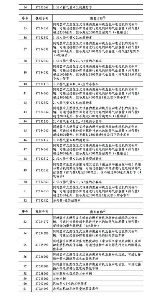 4月4日公示之汽车品类清单需要说明的是,按照加税商品清单,能躲过加税的,只有纯内燃机的小轿车,而电动和混动,不管什么车型,统统面临加税。