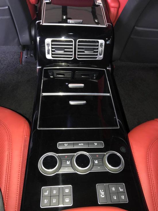 2017款路虎揽胜创世加长版后排才是这款车的重点区域,后排只安排了两张座椅,座椅之间布置了如同前排的中控台,座椅本身也有多向电动调节的功能。并有着独立双区空调和多项设置调整,布置在二排中央,还有遥控器可以控制后排娱乐系统。门板内饰大量座椅同色的皮革包裹,英国之宝音响在后门上就布置了两只高、中音扬声器。