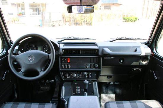 17款奔驰G300军用版依然将实用的理念延续到底,整个内饰设计朴实,各个功能区域清晰明了,很好的传承了G系列的经典设计,高贵的设计,在仪表台区域,奔驰G300采用传统机械式指针设计,可以显示速度、转速、水温与剩余油量,值得注意的是,作为一款柴油车,奔驰G300转速表最大值达到了7000rpm,方向盘采用真皮设计,没有多余的按键,奔驰G300配备了方向盘安全气囊,为驾驶员提供安全。