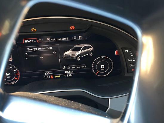 外观方面:2017款奥迪Q7顶配车身前部下包围的前雾灯的设计有细微变化,车尾部下护板处的设计也有小幅变化。采用LED日间行车灯让在车流中很容易被辨识,两个对称的L型灯条环绕整个大灯边沿。
