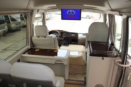 外观的美是我们所能看到的第一步,内饰的设计才是我们真正体现高贵的地方。丰田考斯特改装商务车,在内饰的设计上注重色彩的设计以及内饰的舒适性和实用性的衬托。丰田考斯特改装商务车,在内饰的座椅上可以选择我们可以选择舒适的真皮座椅,豪华的360度可旋转航空座椅,亦或者是原装进口的埃尔法 (配置|询价)座椅,并且配备有通风加热以及电动脚托等设备,丰田考斯特改装商务车以自己独特展现出改装的舒适效果。