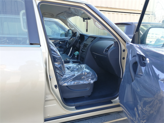 进口日产尼桑途乐Y62中东版的外观好比金刚的话,其内饰就是给金刚加分的内秀,氛围反倒温馨了不少,真皮包裹与实木纹路对称式中控台,没有很奢华却也不失优雅,虽然不够时尚但是用料都是一等皮质包裹,豪华感十足;中控显示提供360度全景影像等,功能非常丰富,真皮包裹的四幅式方向盘具备加热功能,粗细均匀。此处旋钮是途乐之精华所在,四驱模式、多地形越野模式、陡坡缓降系统等都在这里操作。