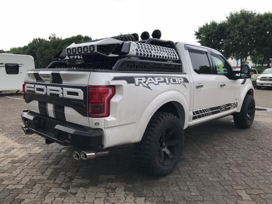 最新福特猛禽F150皮卡爆改版 配置 3.5TT,四驱,136L大油箱,全景天窗,20轮,智能卡,密码锁,远近光LED大灯,10扬声器索尼音响,并道辅助,遥控启动,电动脚踏,电调真皮方向盘,方向盘加热,倒车影像,后电眼,镀铬外观套件,前雾灯,双区空调,前排座椅调节,电动多轮廓真皮座椅,主驾驶座椅记忆,前排座椅通风加热带按摩,后座椅加热,8寸导航屏, 6气囊,胎压监测,拖车钩,镀铬轮毂锁,感应雨刷,镀铬排气尾管,电动开启后行李厢门,拖车钩,电动加热折叠车外后视镜,镀铬前格栅,巡航控制,隐私玻璃,氛围灯,内衬。