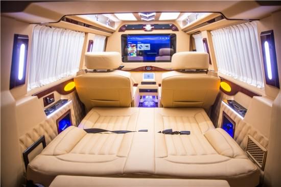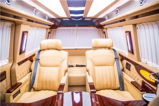 为了更符合高端商务用车的定位,我们对大众迈特威T6内饰部分做了改装,全隔屏设计,另外加装高顶的车身高度将近拓高了15-20CM,相应了升级了贵宾舱的车顶照明灯、以及装饰作用的车壁氛围灯系统,配合精致小天窗设计,更显清新雅致,凸显车主人的生活品味。