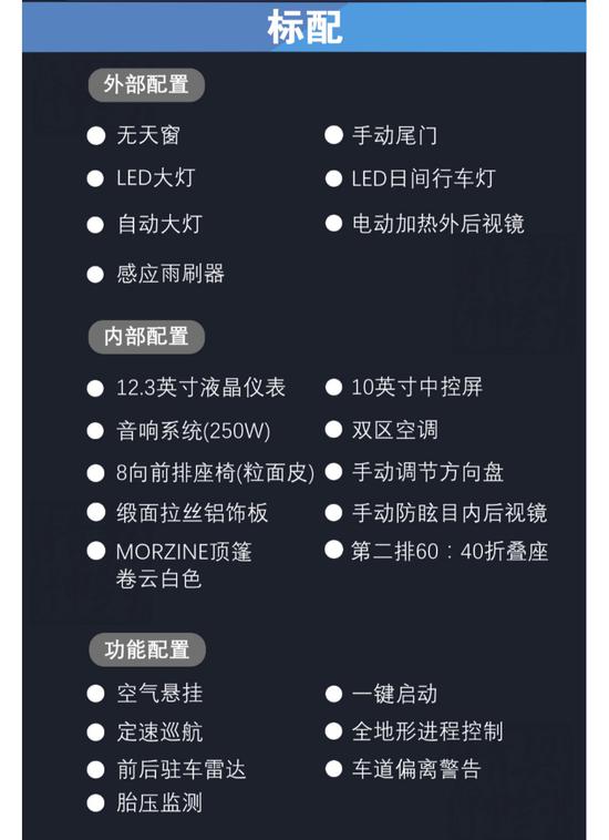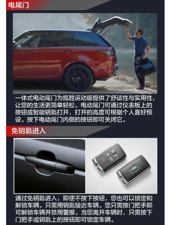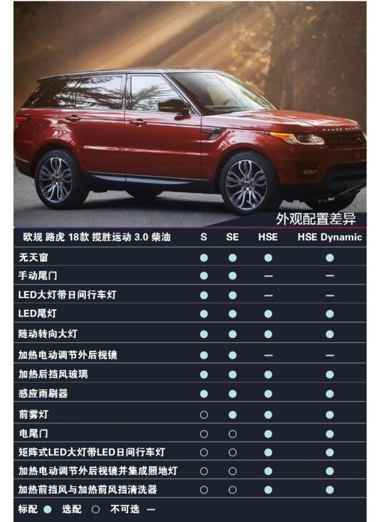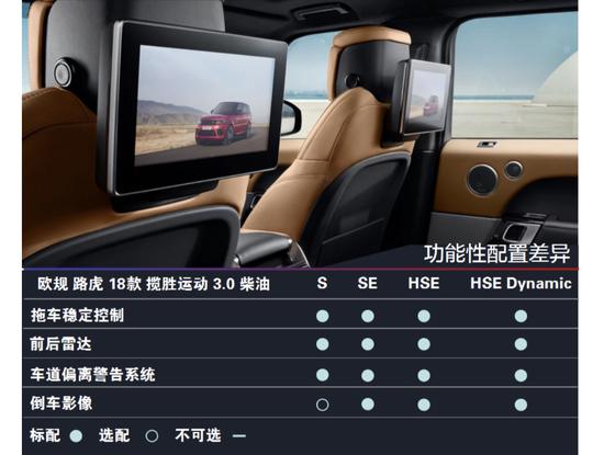 18款路虎运动标配及选配: