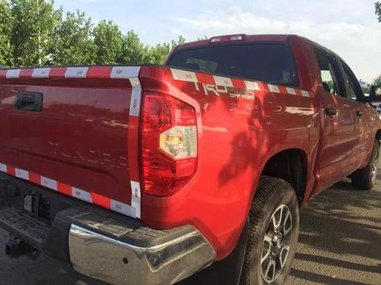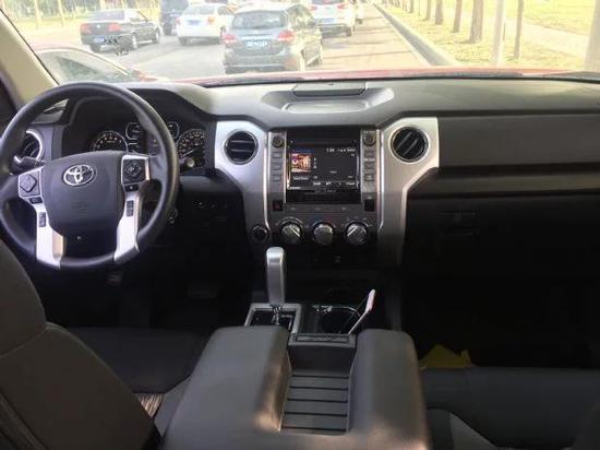今天为大家实拍的这款丰田坦途SR5 TRD版粗犷庞大的身形完全给我留下美式风格的初步印象,而高大的车身也能完全能让那些路上平时很嚣张的高档SUV产生一股莫名的紧张感,5.7升的发动机基本可以应付任何的路面,381的最大马力可以飞驰在高速公路上。