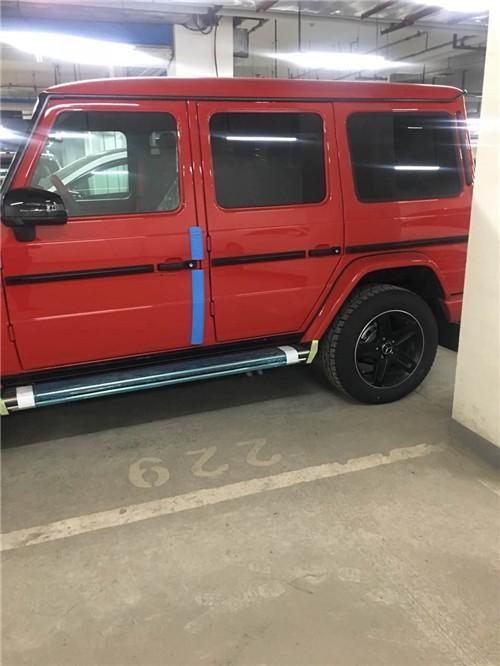 18款奔驰G500它就像一个铁箱子,没有多余的弧度、没有任何曲线,眼光所及满是平直锋利的线条,就连车顶上的导雨沟槽,也是沿着车顶周围一圈,分外焊接上去的金属槽,车门搭钮更是绝不虚心,硬挺挺地屹立在门缝之外,外凸的轮拱、造型如同倒梯形的引擎盖。