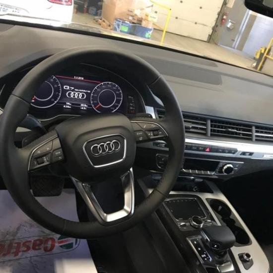 内饰彻底贯彻了奥迪科技生活的理念18款奥迪Q7内饰也彻底贯彻了奥迪科技生活的理念,全数字化液晶仪表盘,多功能方向盘、全新电子挡把、带有大尺寸手写板的MMI系统一应俱全。仪表台做工十分精细,各相关接缝均匀,与车门处的间隙合理。中控台的功能键排列有序,在排挡杆的周边,布置了MMI多媒体交互系统和一键式启动按钮,体现出奥迪崇尚科技的一面。