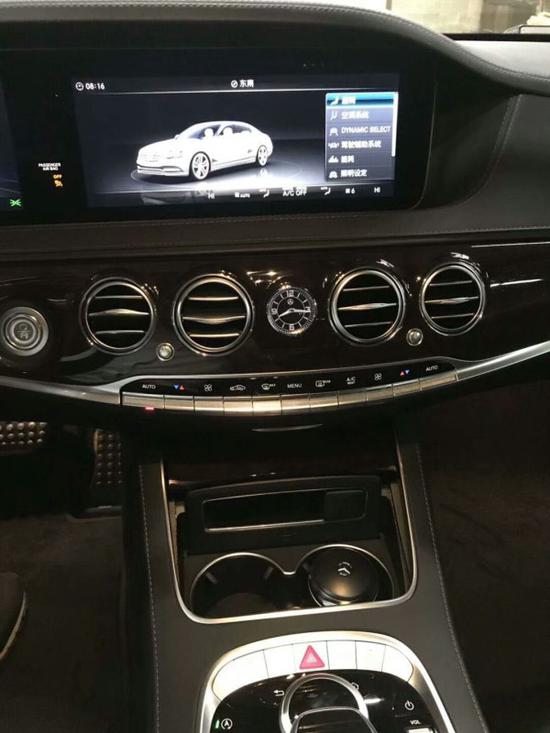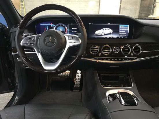 内饰方面:新一代奔驰S 560 4MATIC内饰整体运用双色配色方案,提供64色带有10种主题的氛围灯和大面积的全新木纹装饰。带有触控键的三辐式方向盘,搭配一体化设计的双12.3寸高分辨率显示屏,科技氛围浓重,并且前、后排均设有手机无线充电功能。此外,新车还配备“道路追踪套装”,并可选装“新一代智能驾驶辅助套装”、“避让转向辅助系统”以及“基于路况的主动式速度限制辅助功能”。