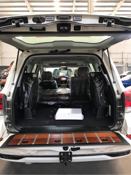 18款中东版酷路泽5700顶配的外观与其他配置的5700大有不同,外观带有前后大包围,前脸镀铬条中镶嵌流水灯,20寸的抛光轮毂,尾翼高位刹车灯,全车镀铬装饰,而且外观的前车标是镜面的,这就是ACC雷达测距系统也叫自适应巡航系统,尾部是VXR标识,这是顶配的象征。