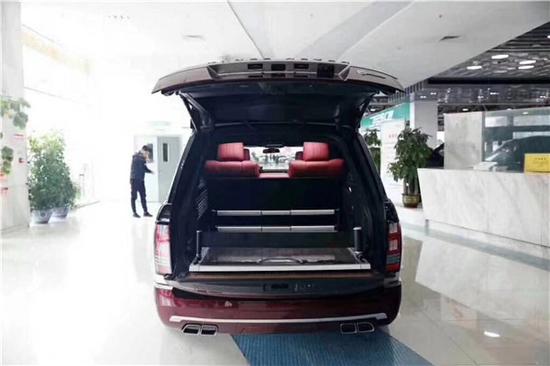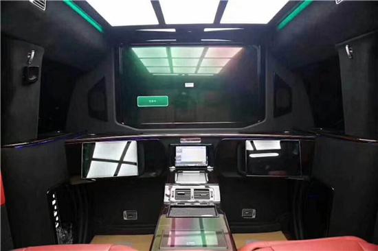 加长路虎皇家一号礼宾车22寸多幅轮毂 前排座椅14向调节带记忆,前排座椅通风加热,后排电动座椅,后排通风加热按摩(带腿托),皮顶,前雾灯,桃木方向盘,方向盘加热,无钥匙进入,一键启动,脚感尾门,360度环车影像,二代地形,空气悬挂,电吸门。 可升降蓝光DVD播放系统,三屏显示,英国之宝825W顶级环绕音响系统,车内氛围灯,后排LED吸顶照明灯,后排独立空调控制系统,电动脚踏板,爱马仕订制窗帘,后排隐藏式密码保险箱,无线