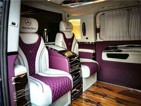 进口奔驰维特斯高顶巴洛克版,采用隐藏六座设计风格,高顶隔断隐藏六座的巴洛克版精美的设计,4+2隐藏六座,前后仓采用隐私保护,增加了隔断设计,LED电视带升降隔断,下面有两个GL450反向隐藏电动座椅,隐藏式电动酒柜,DSP 杜比 5.1 光纤数字音响系统,220V+USB辅助充电系统。