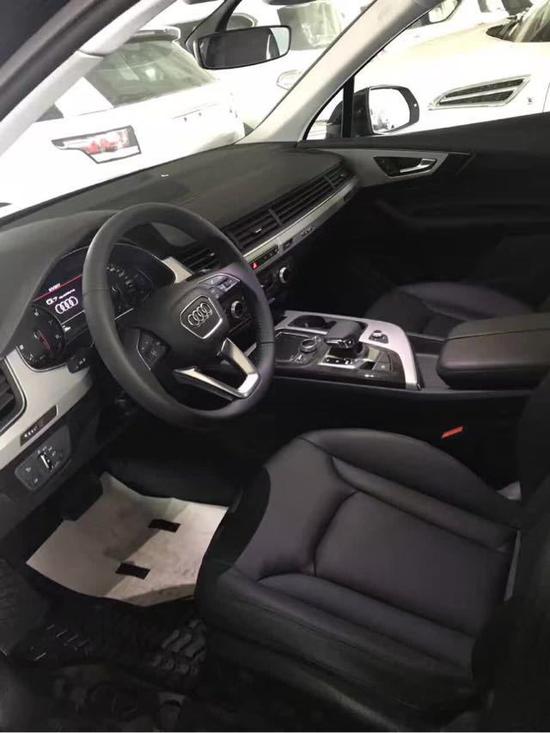 18款奥迪Q7 (配置|询价) 3.0T Komfort舒适 黑/棕 加版 配置:全景天窗;一键启动;19轮;12向电动调节皮座椅;MMI系统;手写板;三幅运动方向盘;方向盘加热;换挡拨片;前座椅加热;前座椅记忆;胎压监测;三区空调;电尾门;定速巡航;私密玻璃;前后电眼;导航;倒影;三排电动