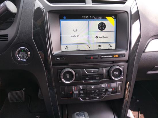原装福特探险者内饰简洁,尽显豪华气质。中控台面板较多采用塑料材质,中间有实木和银色饰板,而在与人身体、手臂等接触较多的区域,则多使用真皮,质感还算不错,做工也算中等水平。双天窗的设计,满足了前两排乘客的采光要求。另外中控台上8英寸屏幕的显示效果也没的说,虽然触控式的操作不太有利于便捷性,但这不会妨碍它的豪华感。