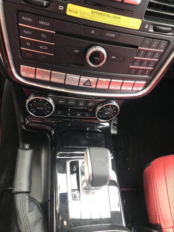 | 17款加版奔驰G63 | 黑/红 | 电议 | 优惠 | AMG仪表盘双筒形,4.5英寸TFT多功能显示屏。AMG主菜单。AMG迎宾踏板。 designo座椅 高度和角度电动调节方向盘。自动空调。前排后排乘客加热座椅,前座椅通风,电动调节的驾驶员和前排乘客座椅。记忆功能的驾驶员座椅、。环境氛围灯。滑动天窗。左右加热外部后视镜。可加热风挡玻璃。后侧窗和后车窗的深色隔热私密玻璃。雨量传感器。后车窗雨刮器。复式氙气大灯。LED日间行车灯。盲点辅助,驾驶员和前排乘客侧部气囊,车窗气囊,AMG高性能制动系统。全轮驱动。3个100%差速锁,Harman Kardon 环绕立体声音响系统。ECO启动/停止功能 ,方向盘加热,鹿皮顶,雷达测距,20寸AMG轮毂,红色卡钳。 | 现车 |