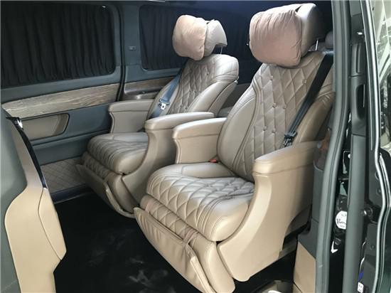 进口奔驰V250改装迈巴赫VS680凭借行政座椅,前排乘客侧的后排乘客即使在长途行车中也能够完全放松。仅需按下一个按钮,便可将座椅设置到舒适的角度,最大倾斜角度为 43.5 度。一个附加的伸出式腿部支撑进一步增强了舒适性。配备电动可伸出式脚踏板时,能够创造出一个适合睡眠的舒适座椅角度。当座椅靠背倾斜度较大时,可以通过一个气垫增强乘客的安全保护效果。发生正面碰撞危险时,它可在座垫下展开,从而防止乘客从安全带下方滑出(潜滑)。