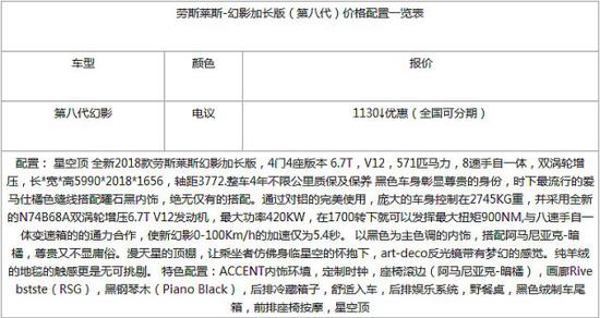 2018款全新劳斯莱斯幻影必然是极少数人才能染指的顶级奢侈品,是处于金字塔顶的人,彰显不凡身份,大胆无畏的象征,无他。它就像一座移动的宫殿,堪称业内经典,随时随地展示车主的身份及品味。如果您动心并有足够的财力,就别再犹豫,因为它缓慢的生产周期让现车少之又少。能够在当下拥有全新幻影的人,也绝非一般身份。