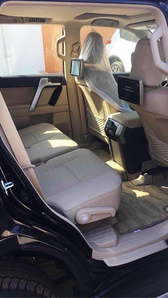 18款霸道4000(LTD)限量版 配置: 电动方向盘调节,炫彩仪表盘,九气囊,天窗,KDSS动力调节悬挂系统,JBL音响14个扬声器,360度环影,倒影,9寸导航,第三排电动折叠座椅。多地形监测4个摄像头,多地形选择路况,后排娱乐电视,前排电动座椅,前排多调座椅通风,上下坡辅助,一键启动无钥匙进入,车身稳定,胎压监测,蠕动模式,后部交叉交通预警,雷达,18轮,后挂备胎(带备胎罩)真皮座椅,盲点监测,自动开关大灯,大灯清洗,儿童安全装置,大灯和昼夜流水灯,防擦条,远程遥启,自动头灯,行李架,自动空调,桃木内饰,桃木方盘,电动折叠后视镜,巡航定速,中央差速器,刹车辅助,蓝牙/CD/AUX/USB/随动助力方向盘,150大油箱。