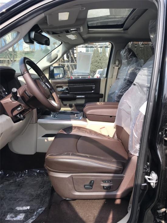 2017款道奇公羊1500豪华版5.7中控台的设计简洁硬派,符合公羊的气质。道清公羊拥有自调节空气悬挂,当一辆足以秒杀悍马的庞然大物从你身边呼啸而过时,你忍不禁会先倒吸口凉气。道奇公羊皮卡真皮座椅各自独立,配有加热、按摩等舒适功能,每个座椅独立配一个操控手柄,各项功能由乘坐者自己控制。