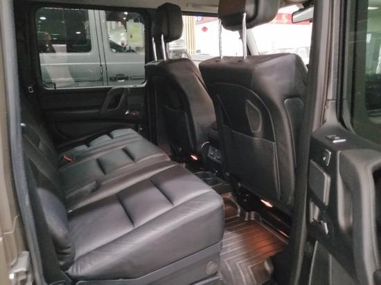 全新奔驰G550 AMG方向盘以高档真皮包裹装饰,触感极其细腻。配有桃木装饰的操控台,稳重大气,同时提高了整体的质感。各种功能按钮应有尽有,丝毫不次于豪华轿车的功能;后排空间非常宽敞,且后排的座椅可以折叠,以得到更宽敞的储物空间。卓越的品质和精致的工艺在车内体现得淋漓尽致,对细节的精益求精是内饰设计中的重要原则。车内采用深色调与桃木装饰,真皮运动座椅非常舒适,新一代奔驰G550底盘有好几道加强梁进行加固,前后整体桥式悬挂系统粗壮无比,奔驰G级 (配置|询价)绝对是最强壮的民用车之一。奔驰G550全地形超豪华SUV全时四轮驱动系统以及带越野减速比的动力分配变速箱是G级越野车的经典配置。虽然整备自重高达2.2吨,但这台发动机可以轻易的在7秒内实现百公里加速。