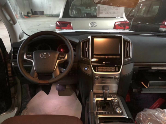 18款酷路泽5700 VXR 中东-现车 配置:天窗,8座车7座手续,真皮座椅,座椅通风,12气囊,底盘升降,360度环影,雷达测距,电动尾门,蠕行系统,并道辅助,车道保持,八速变速箱,中差速,桃木内饰,桃木方向盘,20轮,行李架,氙气大灯,全车镀铬,四门智能卡,大包围,,小尾翼,前后电眼,智能后视镜折叠,KDSS悬挂系统,冰箱,后排娱乐,流水转向灯 踏板灯,迎宾灯,地射灯 比17款后娱大3寸 ,智能电动后视镜