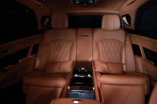 新款慕尚长轴距版车身长宽高为5825*2208*1541mm,轴距达3516mm,相比于现款车型尺寸全面升级。内部充分利用额外的后排空间,宾利研发了航空式电子腿托,组装在两个后排座椅的基座上。腿托可以向外延伸和旋转,为后排乘客提供直立、放松、倾斜等不同座椅位置的乘坐体验。在慕尚长轴距版的两个后排座椅之间,有一个控制台,还提供各种实用功能,例如USB接口、笔架、杯托和玻璃盖储存区。