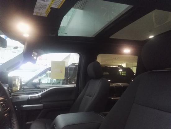 18款福特F150 内饰中央控制区搭配了触控式显示屏,其下方则是多媒体控制区及空调面板,采用旋钮+物理按键的组合。中控功能区域可分为三个小控制区,最上端为音响控制及导航控制,中间为收音机调节控制,中控台8.0寸的彩色中控屏和4.2寸行车电脑屏为驾驶者提供清晰的周边情况,同时根据反馈的信息自动调整驱动程序,发动机启停系统、10速变速箱的技术更是引领全球皮卡技术前沿。最低端为空调及座椅加热控制。在内部空间的庞大基础上,福特也提供了非常具有舒适性与服务性的内饰配置。另外,新车还配备了一块大尺寸的全景天窗。