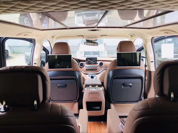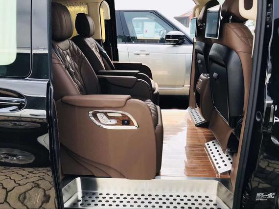 | 2018款中东版奔驰V250 | 黑/咖 | 电议 | 3万 | 长轴5.37m、 7档变速箱 标配:可加热电动调节外后视镜、环境照明、电动尾门、双侧电动门、巡航控制、限速报警、安全气囊;内饰:全车手感实木 、卡其色(全车窗帘)、鹿皮顶、豪华(曲面)顶灯、后舱柚木地板、迈巴赫脚踏板;座椅:前排座椅加热、后娱乐系统、美固冰箱、220V电源、二排座椅:迈巴赫航空座椅(腿拖•按摩•通风•加热)三排座椅电动折叠•加热、奥迪扶手;外观:全车镀络亮饰、19多幅轮、新式流水大灯,倒车影像。 | 天津现车手续齐 |
