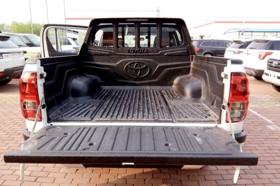 货厢的内部尺寸目测与国产皮卡短轴距车型大小相差不多,此外货厢宝是皮卡车型不可缺少的配置,而龙门架并没有采用国产皮卡的不锈钢货架,黑色的涂装看上去不会那么的突兀,而且刮花也不会心疼。让我比较惊喜的是,龙门架下方的丰田巨型LOGO起到了画龙点睛的作用,