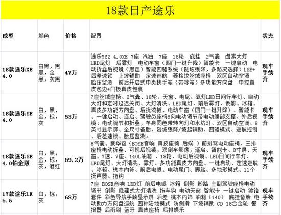 2018款日产途乐Y62以下所有车型暂定优惠两万,更多优惠至文章底部咨询。