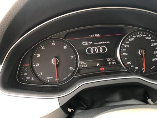 2018款加版奥迪Q7舒适版 白/黑 车架号2859 手续齐全,环保公开,生产日期17年11月标配:3.0升,6缸TFSI发动机,自动变速器,胎压监测系统,奥迪氙气大灯,Led日间运行灯,铝合金内饰,车顶行李架,高光包,全景天窗(深色玻璃),暗色车窗玻璃,标准前座,前座4向电动腰部支撑,电动可调前座(记忆座椅),驾驶员座位记忆功能,后排儿童座椅固定装置,前排座椅加热,第三排座椅,镶钻银灰/橡木灰上镶嵌内饰,铝镶嵌门槛,皮革表面,加热三幅皮革多功能方向盘,方向盘电动伸缩调节,内饰灯,电动可调,可折叠,可加热的外后视镜带记忆功能,3区自动空调,电尾门,电动制动装置及预警,车库门开关,遥控无钥匙启动,可拆卸后备箱底板,驾驶信息显示系统(彩屏),MMI广播,奥迪音响系统,卫星广播,蓝牙接口,奥迪基础车辆感应雷达,巡航控制系统,电动停车制动,前后停车感应辅助传,奥迪驾驶模式选择系统,前/后刹车盘,标准悬挂减震,前排双侧安全气囊,自动启停系统,塑料后保险杠,MMI(手写板),导航,倒影包 单选:珍珠金属漆,20寸10幅轮毂