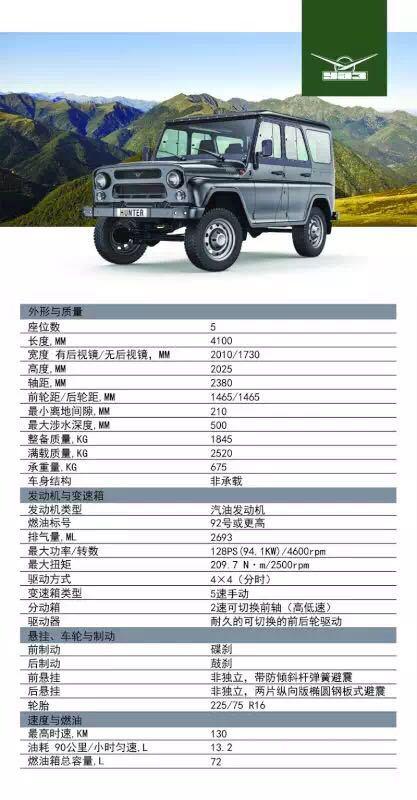 瓦滋猎人,是由俄罗斯著名红色军工厂乌里杨诺夫斯克汽车制造厂,生产的明星产品。其前身“瓦滋-469指挥车”,是著名的传奇军用指挥车“嘎斯-67”的升级版,经受了第二次世界大战血与火的考研,穿越半个多世纪的精心打磨,已经发展为现今的“瓦滋-猎人”全地形硬派越野车。