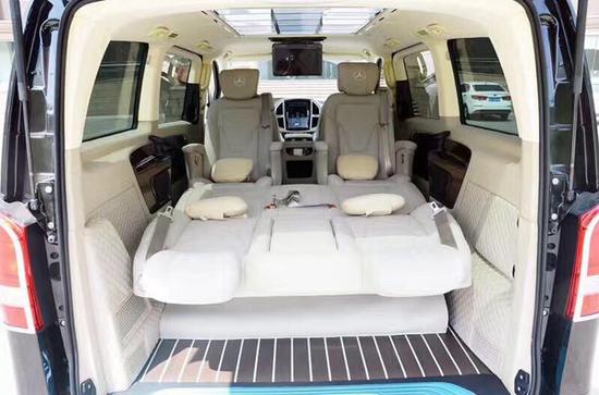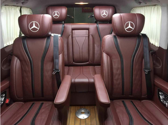 奔驰Metris豪华商务房车在乘客舱前排首长级多功能电动座椅带脚托,设计了滑轨,可自由电动移动和收缩,适应多种身高、体型的乘客,多种坐姿任君挑选,将舒适惬意延伸到车内每个角落